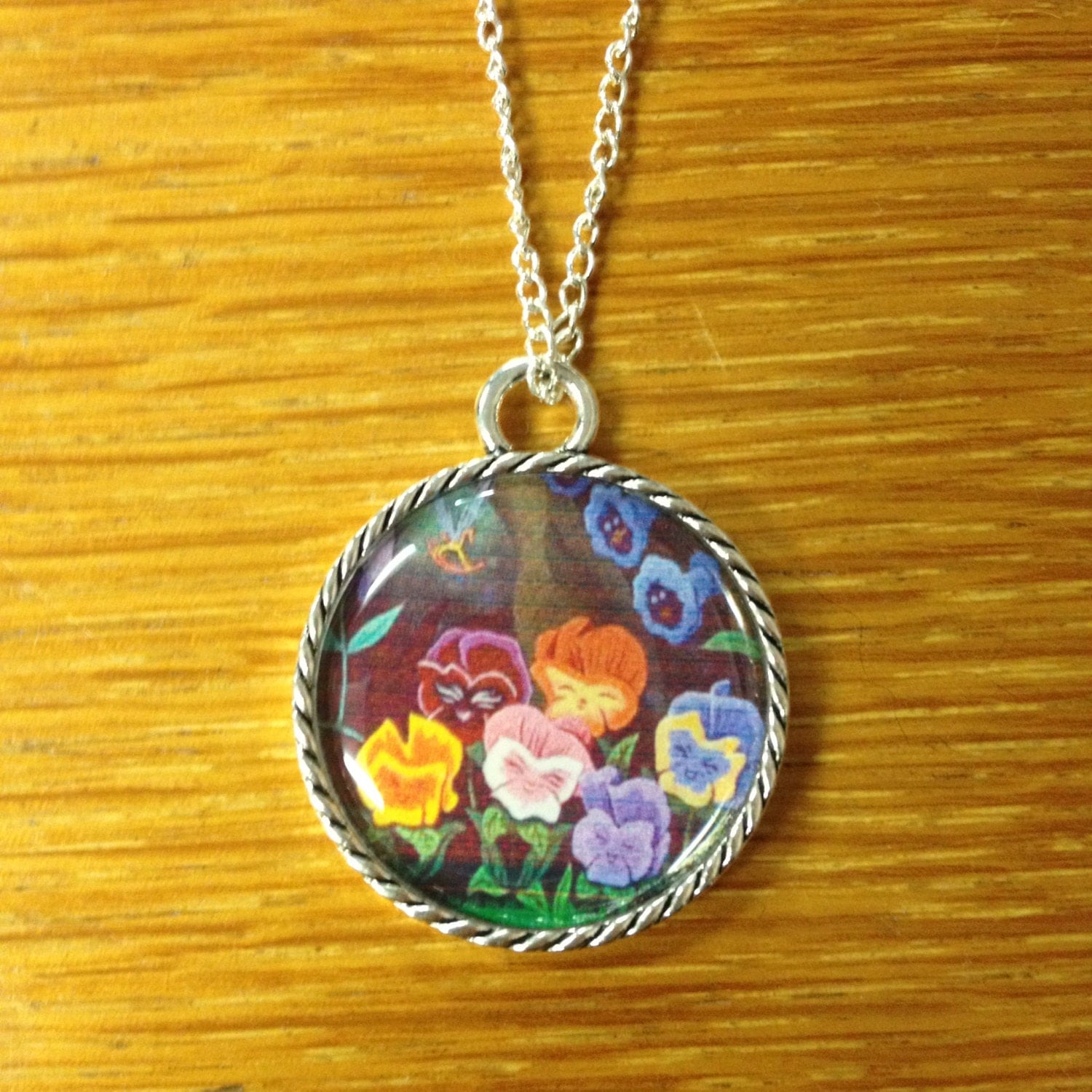 Alice and Wonderland Talking Flowers Pendant Dome Necklace