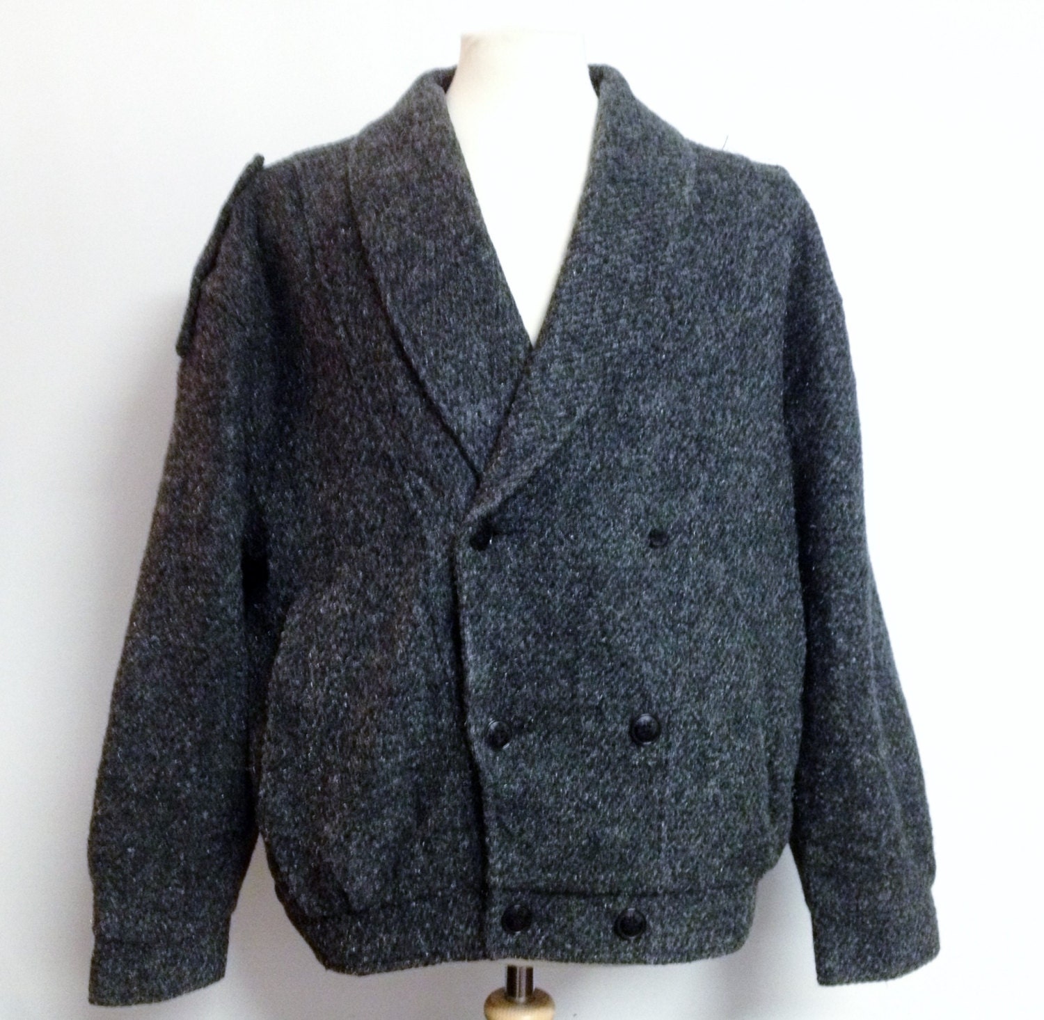 Vintage Grey Fleck Wool Bomber Jacket Coat