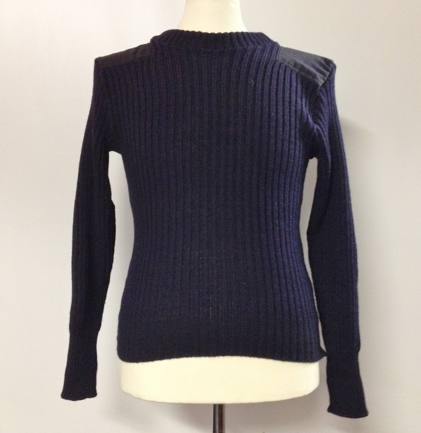 Vintage Navy Blue Military Wool V Neck Jumper Sweater