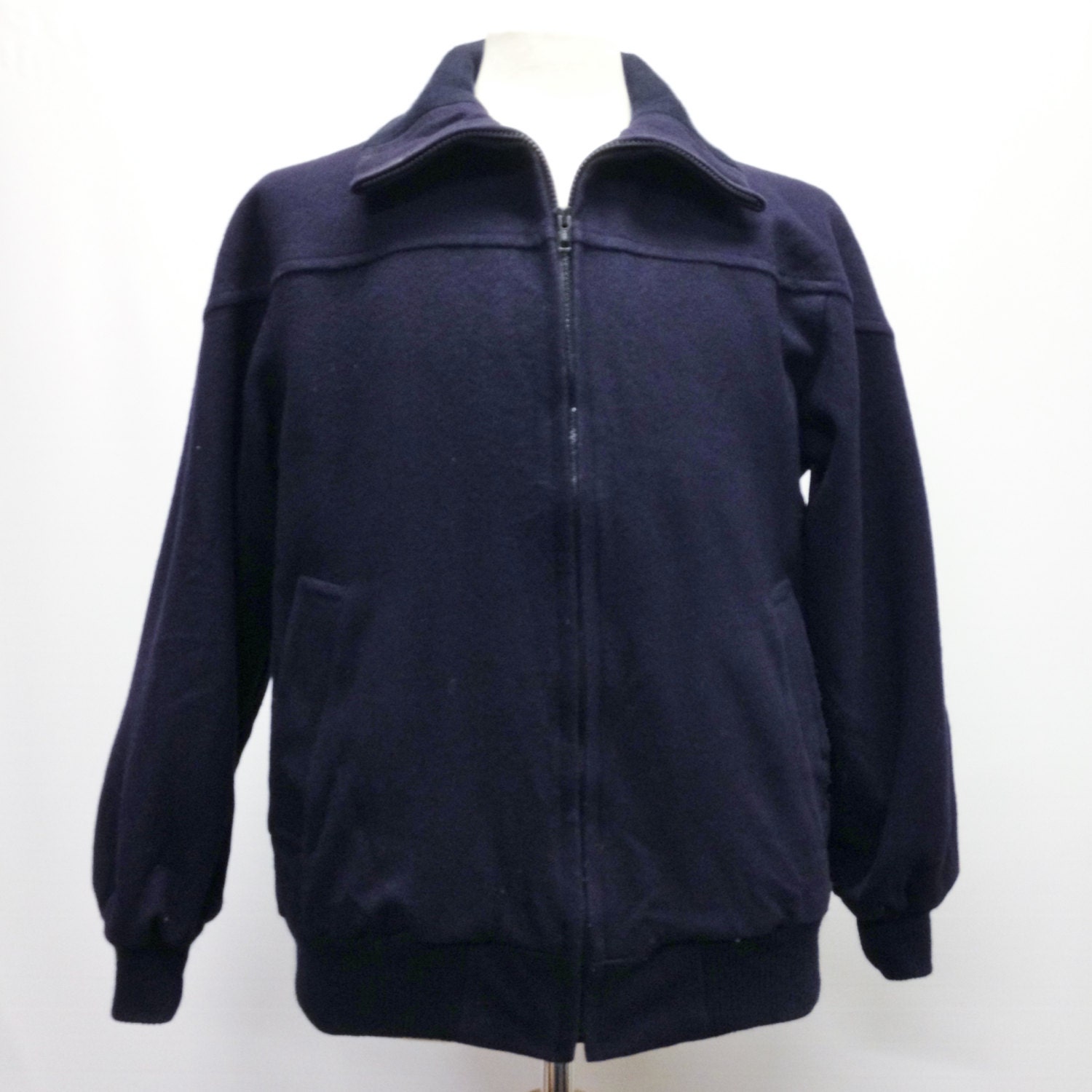 Vintage Navy Blue Wool Bomber Jacket Coat