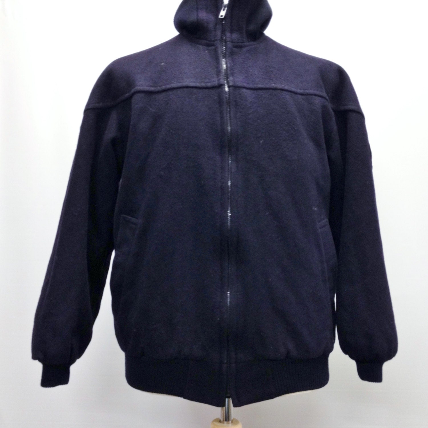Vintage Navy Blue Wool Bomber Jacket Coat