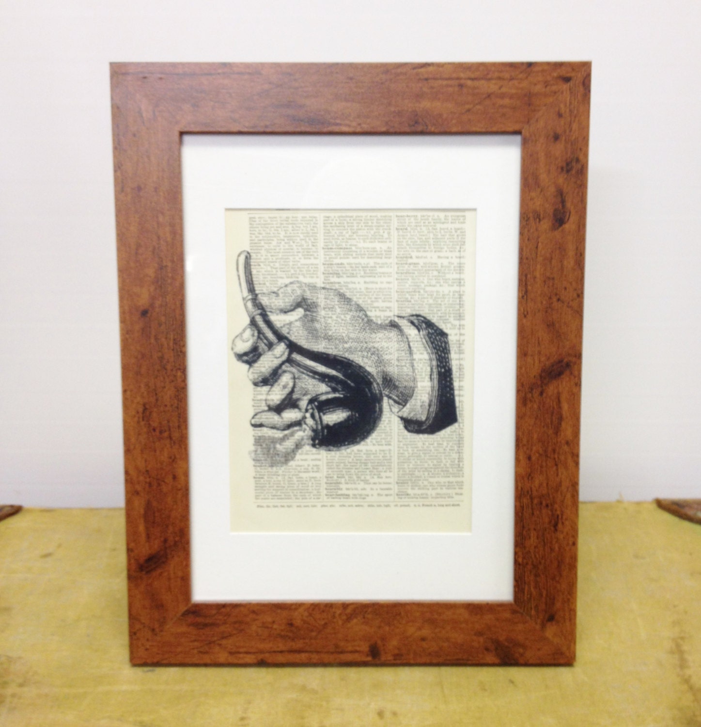 Vintage Quirky Smoking Pipe in Hand Dictionary Page Wall Art Framed
