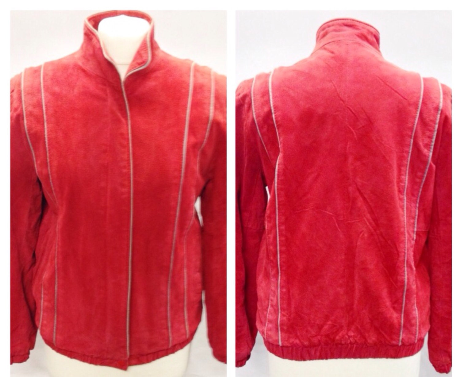 Vintage Red Suede Fur Lined Bomber Jacket