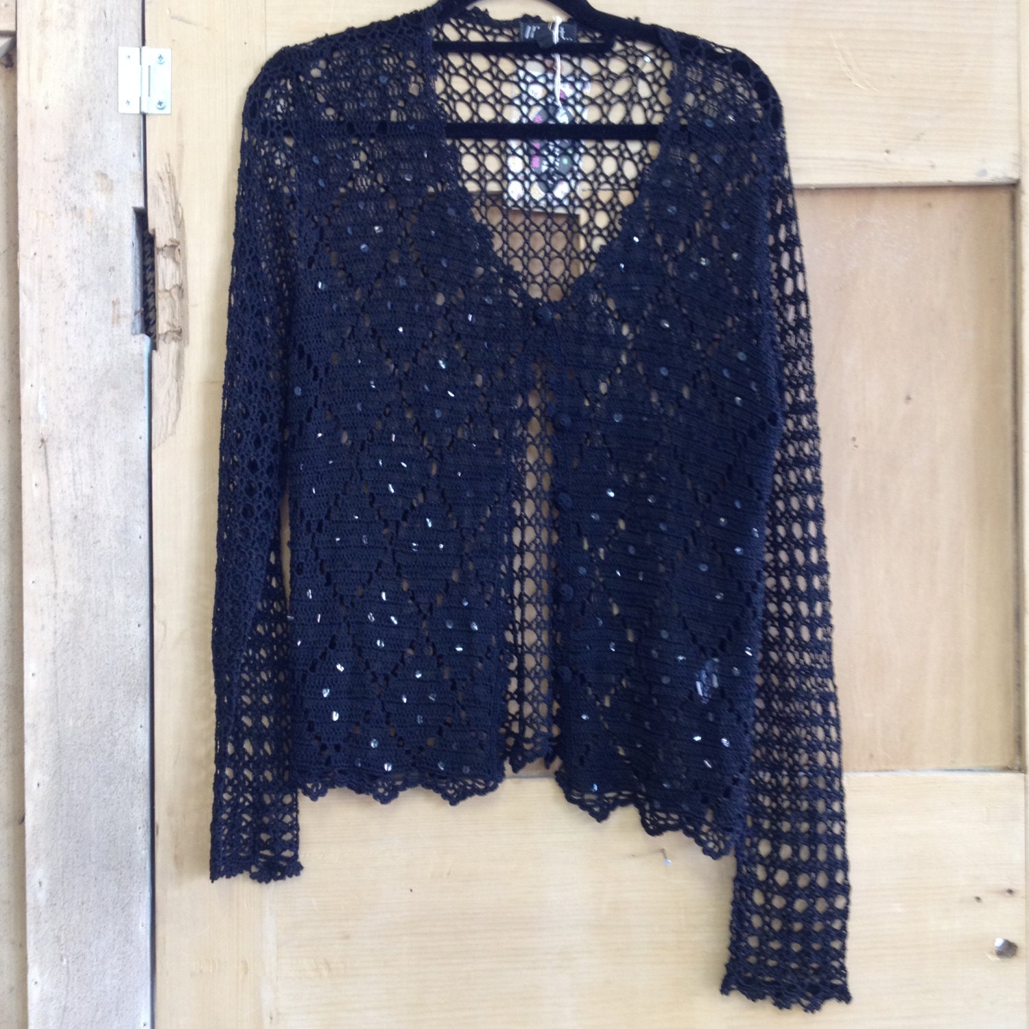 Vintage Crochet Black Sequin Cardigan