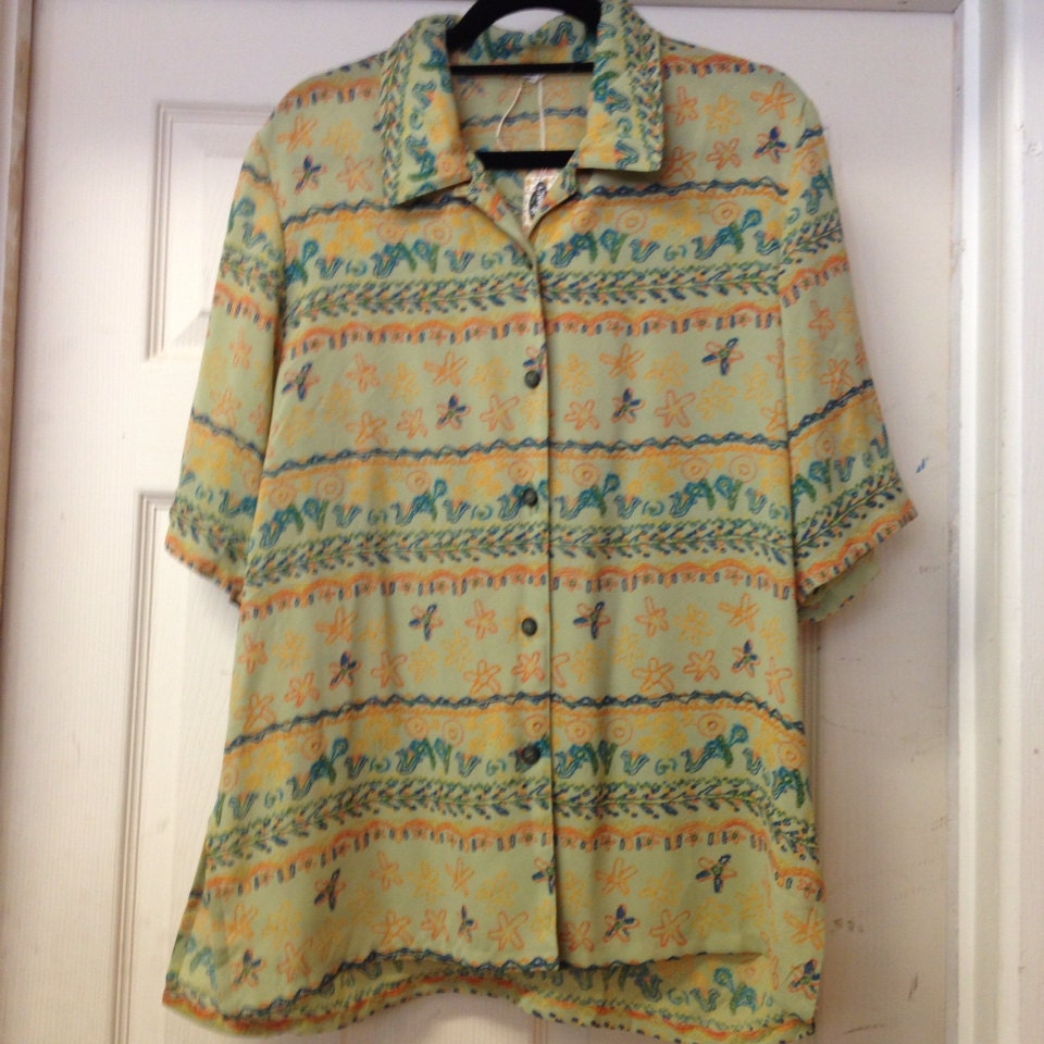 90s Green Floral Blouse