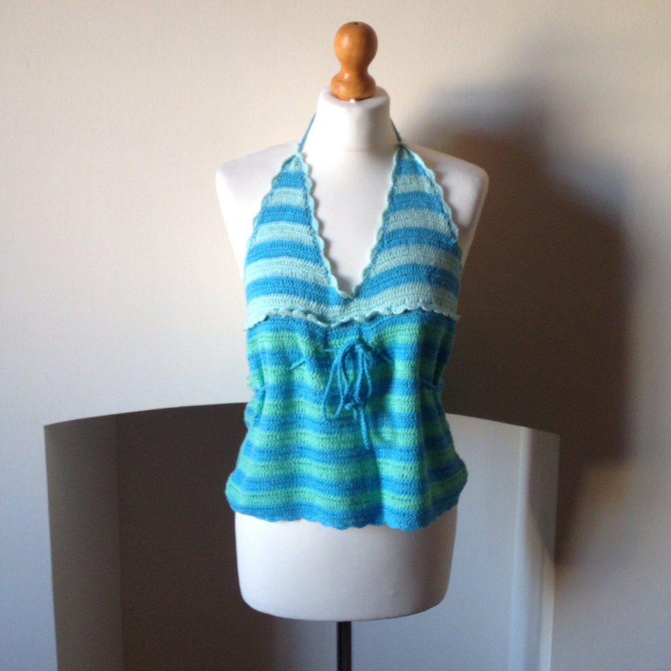 90s Grunge Hippy Festival Crochet Top in Mermaid Blue
