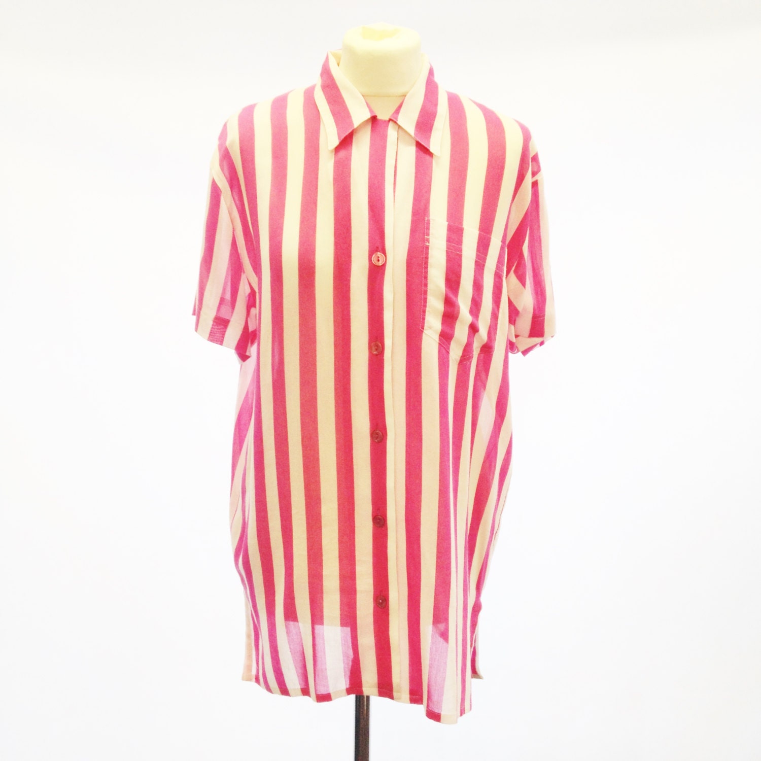 90s Oversize Pink/White Stripe Top