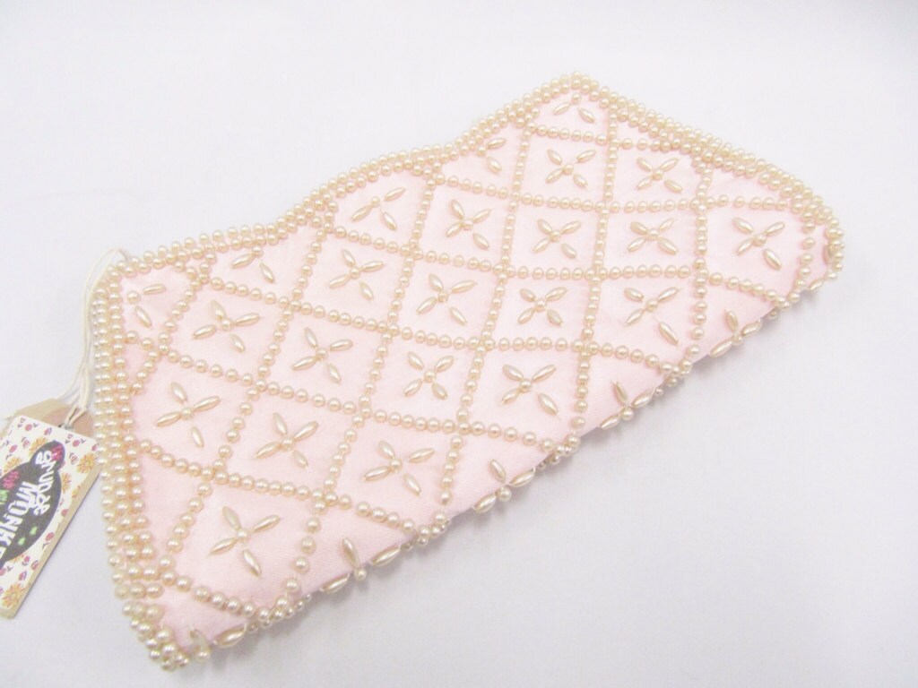 Vintage Pink Beaded Pearl Purse