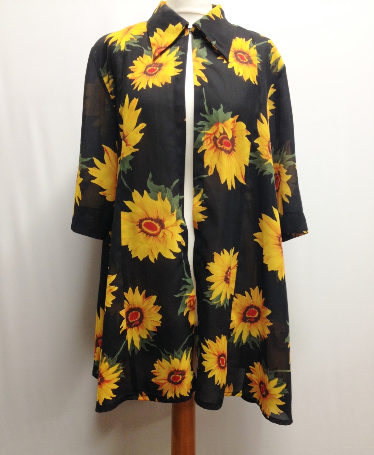 90's Sunflower Print Oversize Kimono Floaty Shirt
