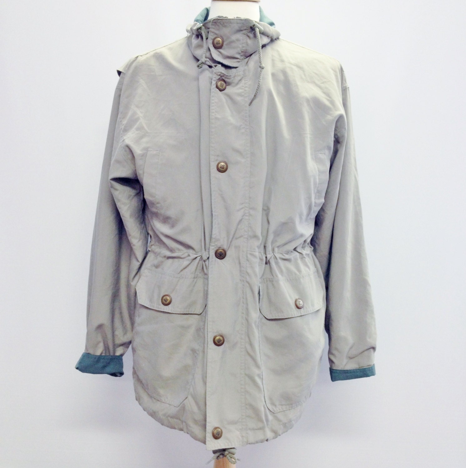 Vintage 90's Khaki Green Rain Mac Parka Coat Jacket