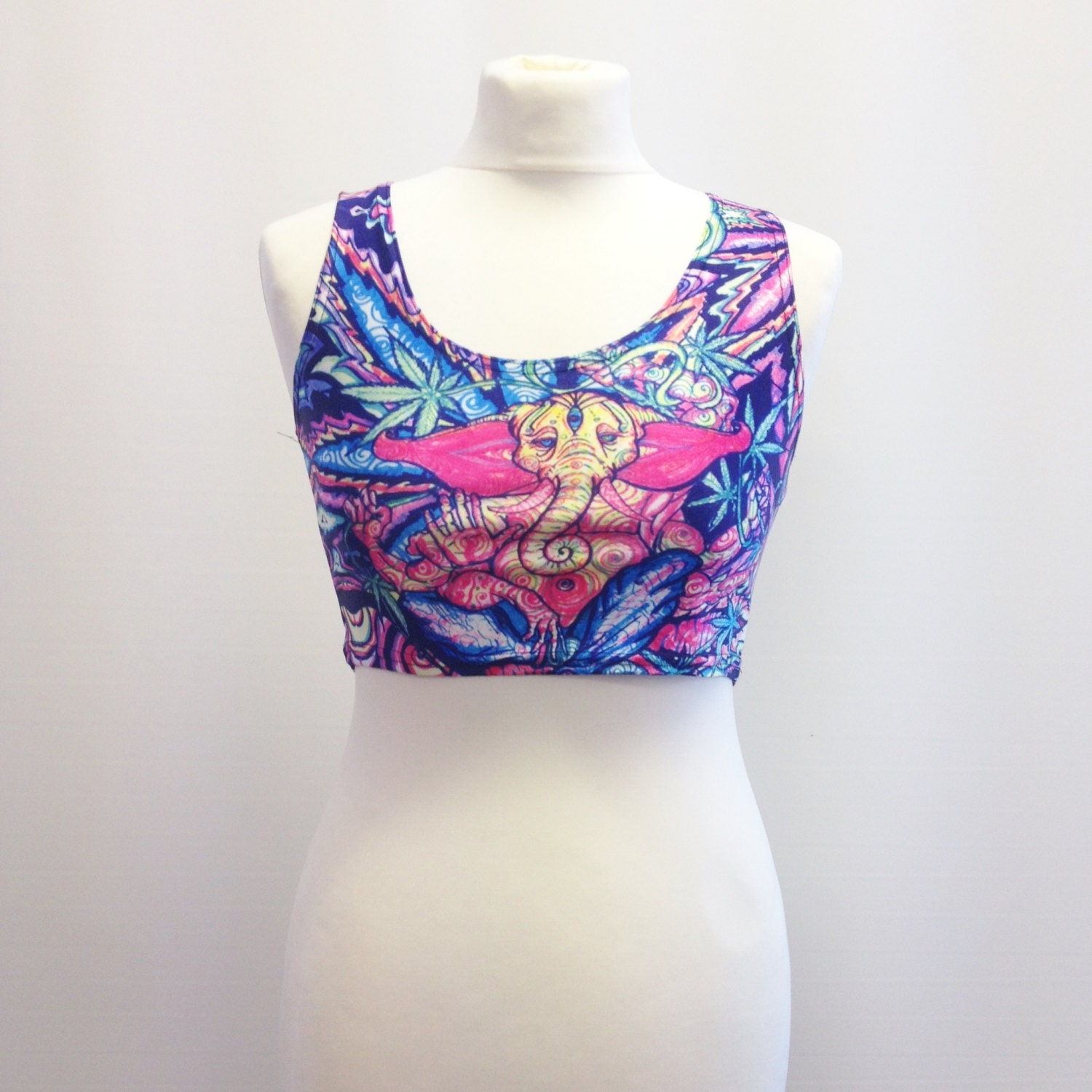 90's Neon Bright Elephant Boho Psychdelic Hippy Crop Top
