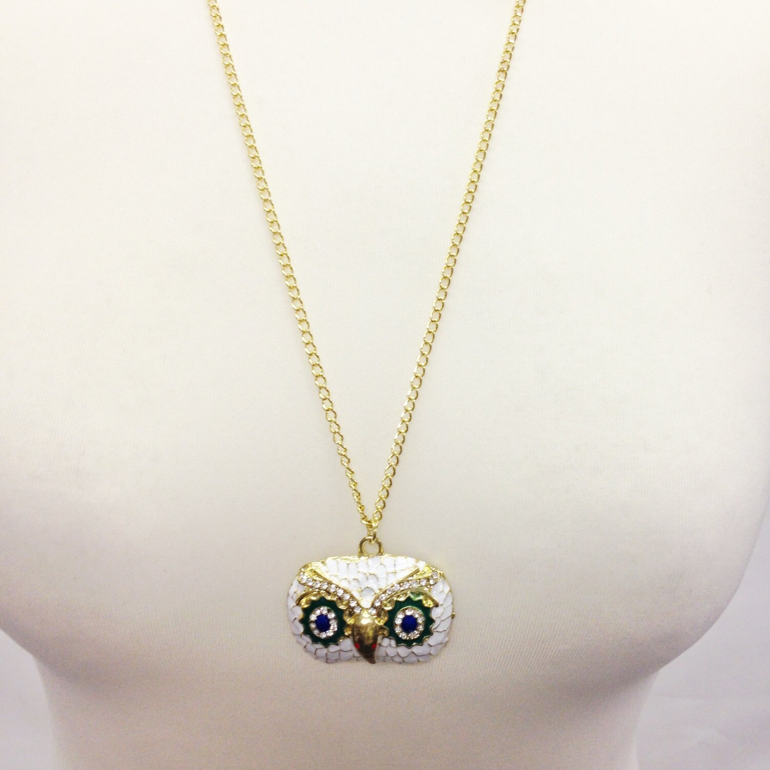 Kitsch Owl Face Diamante Pendant Necklace