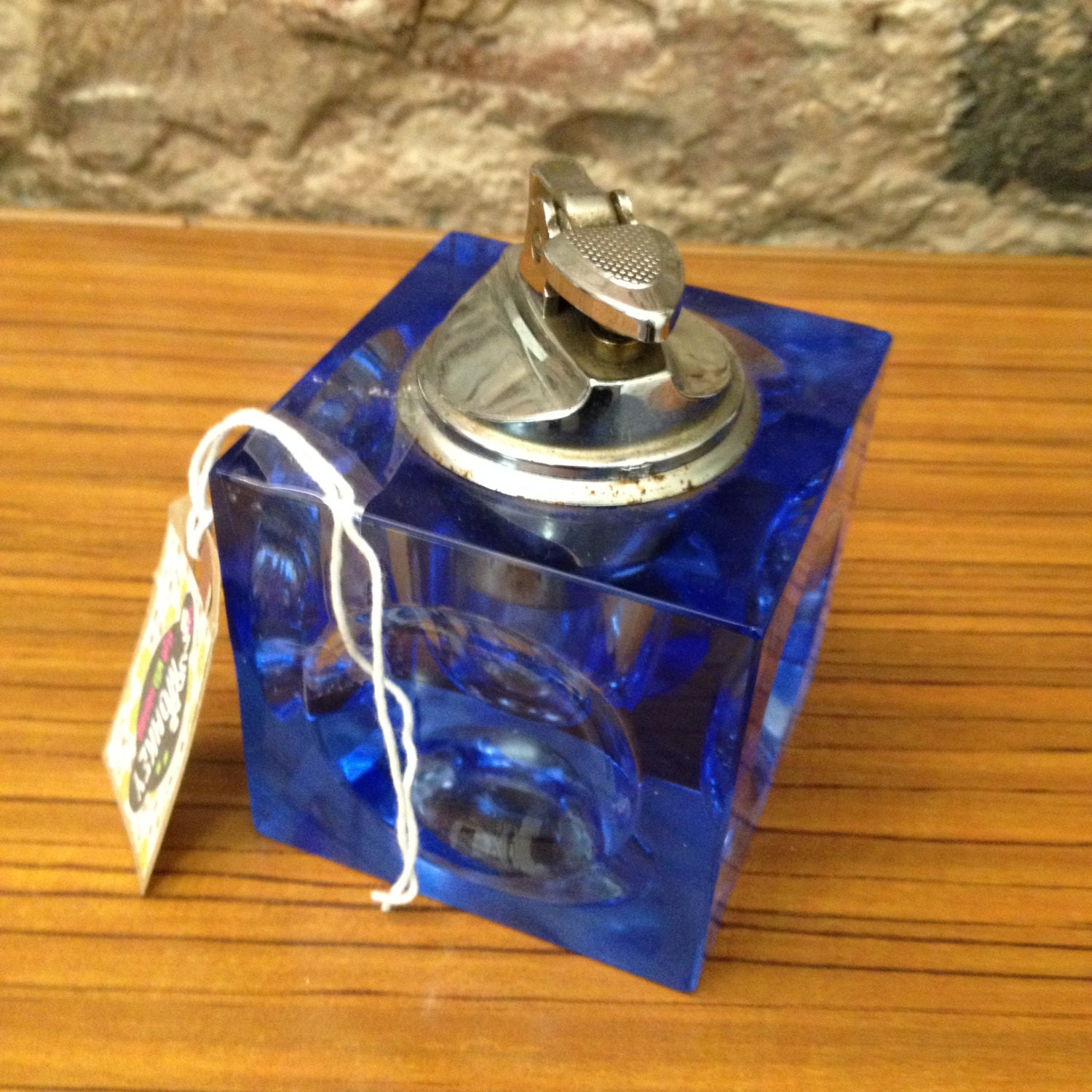 Vintage 1960's Blue Glass Cube Lighter