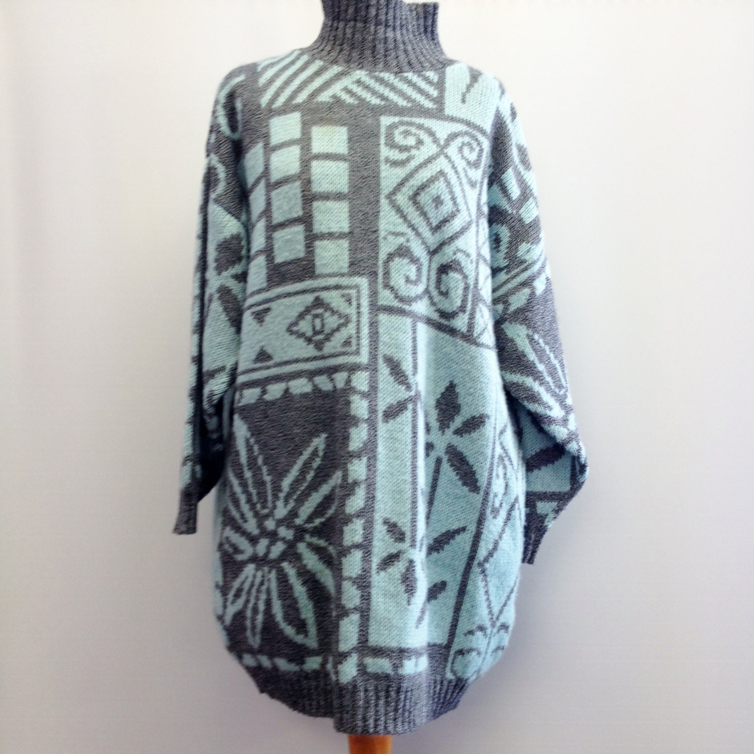 Vintage 90's Oversize Blue Grey Crazy Pattern Jumper Dress