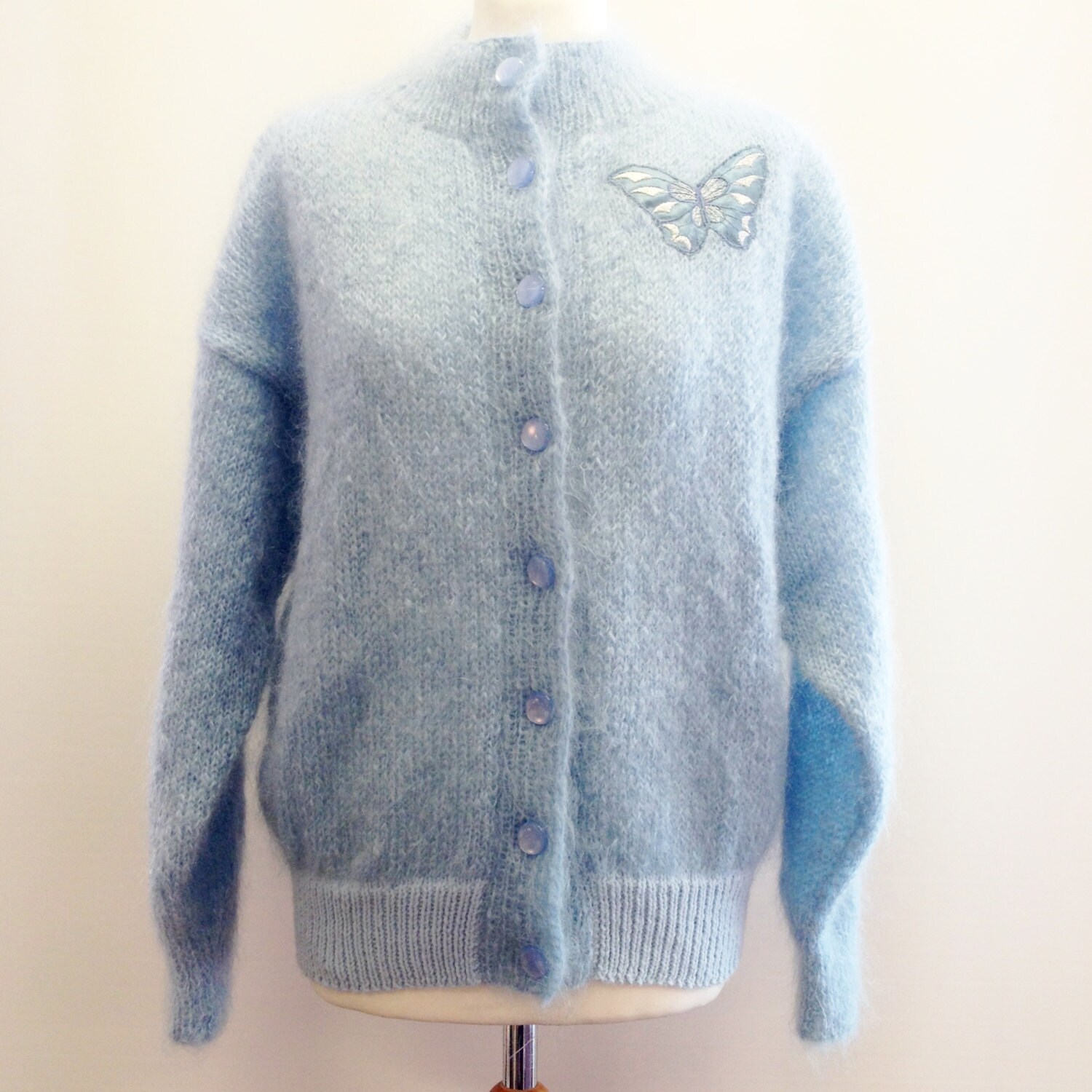Vintage Baby Blue Butterfly Mohair Cardigan Knit