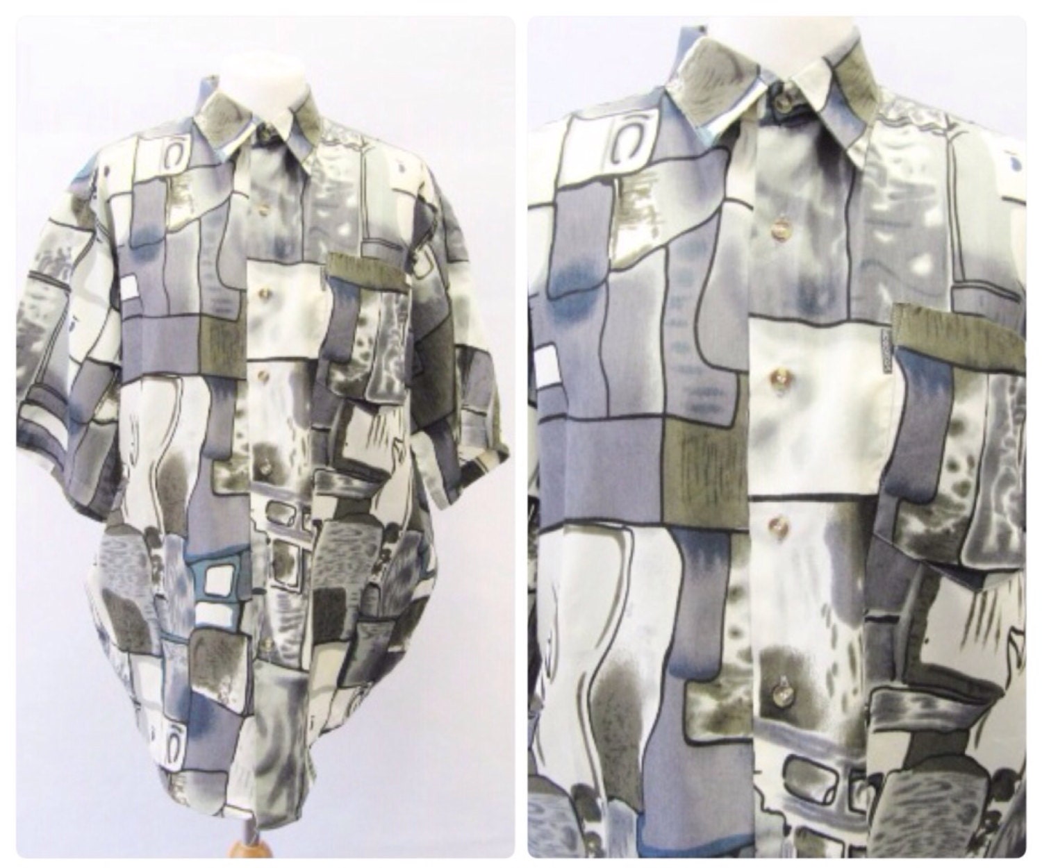 Unisex 90s Crazy Block Pattern Silk Shirt