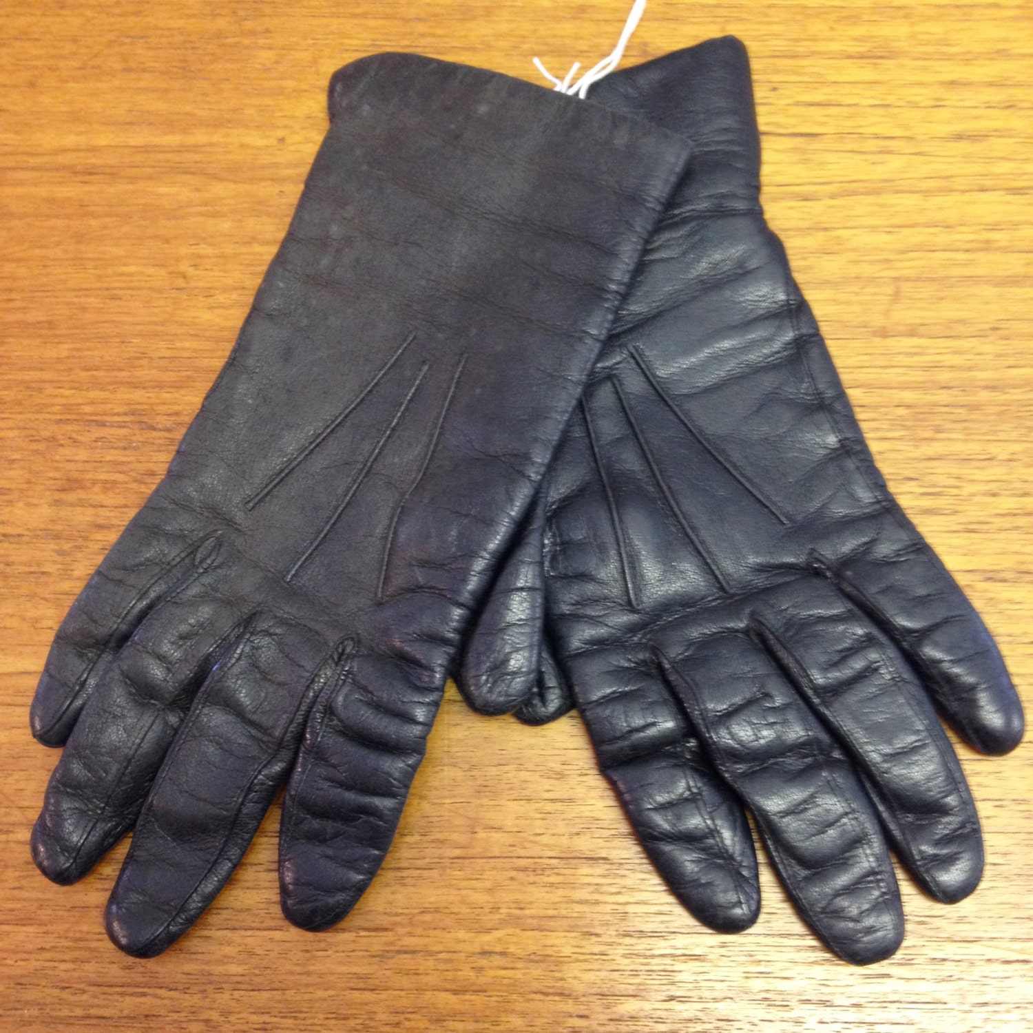 Vintage Black Leather Biker Gloves