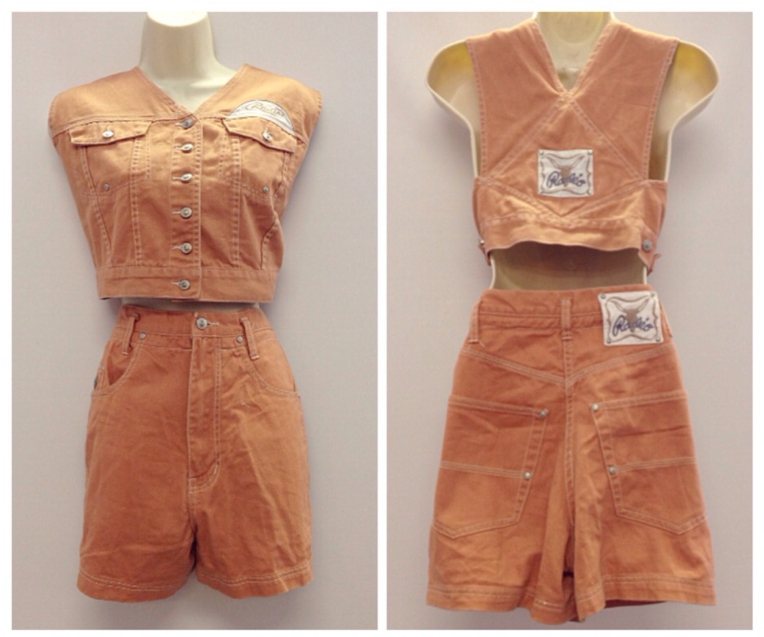 90s Grunge Light Orange Denim Two Piece Shorts Crop Top