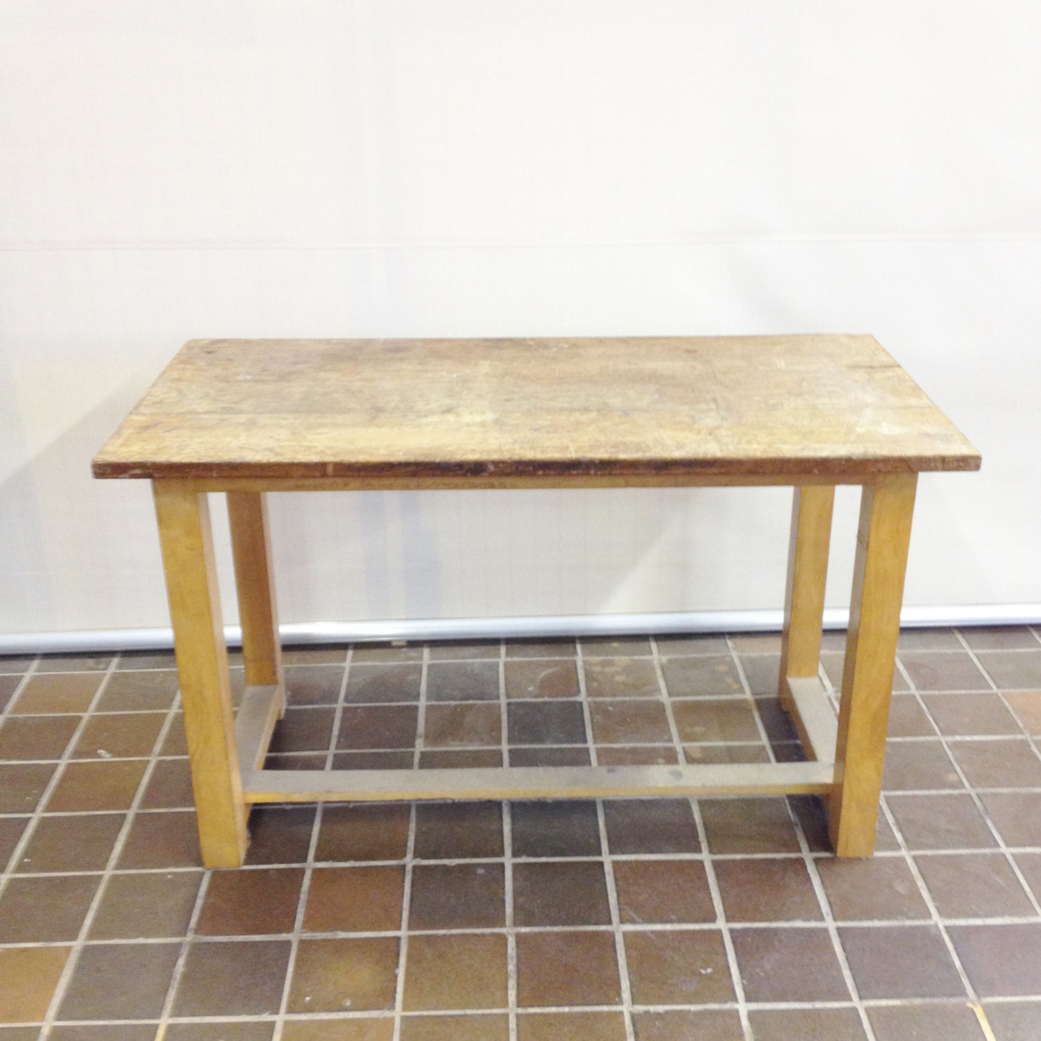 Industrial Salvage Table School Lab Desk Rustic Old Pine