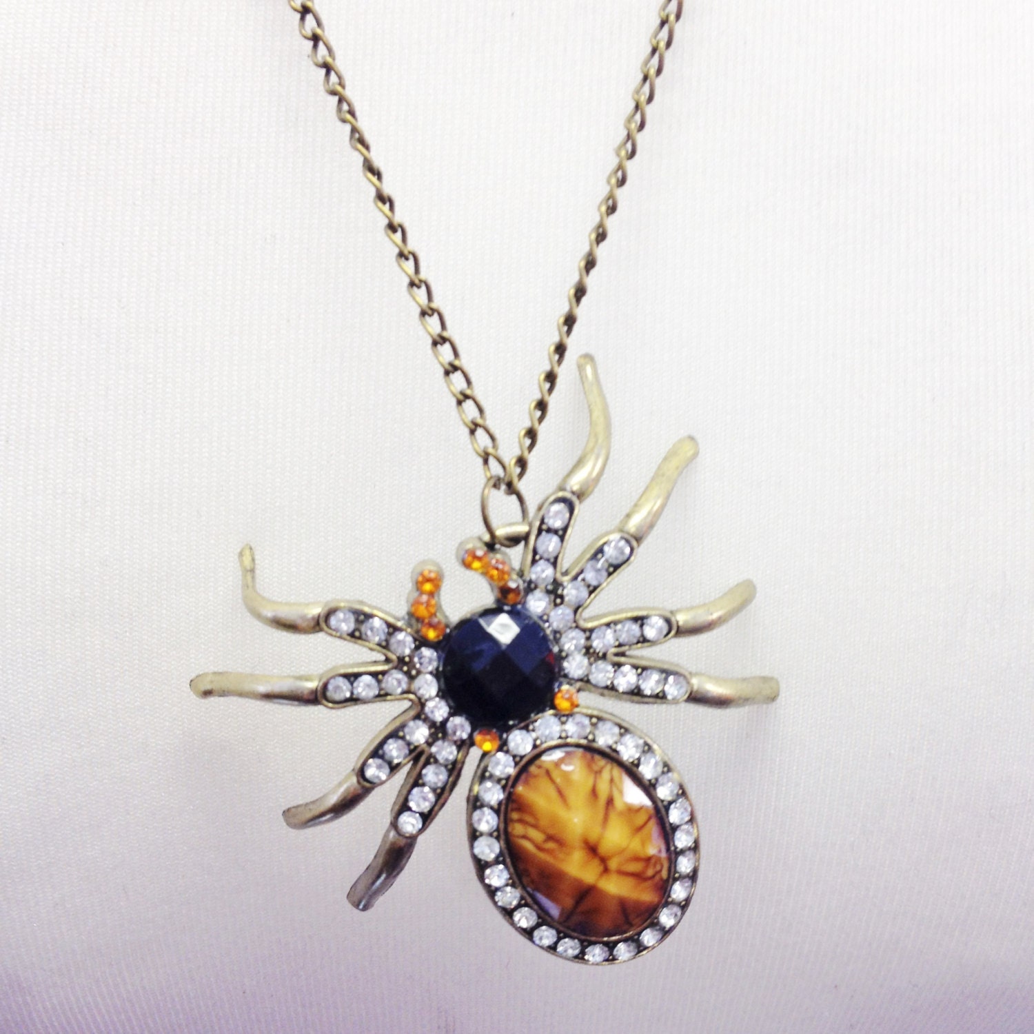 Spider Gemstone Necklace Gothic Quirky Spirit Animal