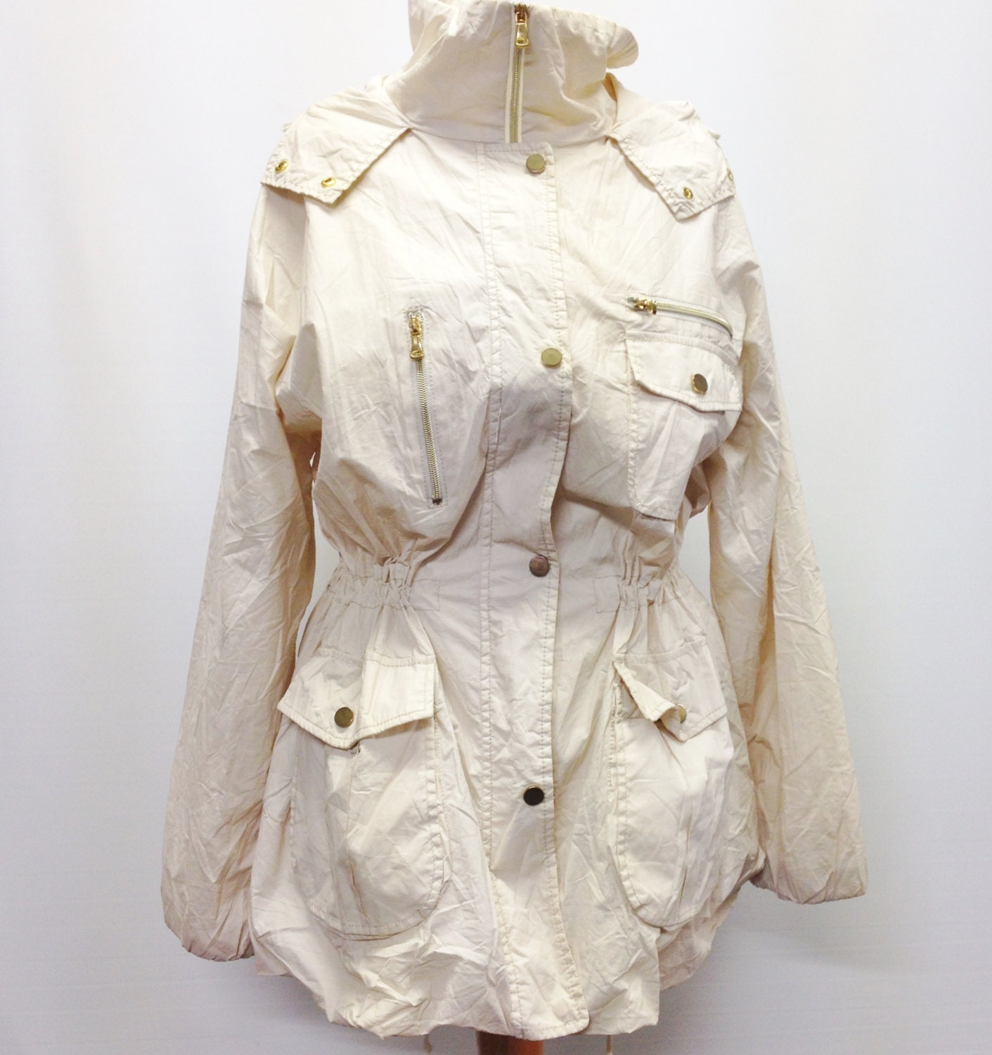 90's Cream Hooded Rain Mac Parka Coat Jakcet