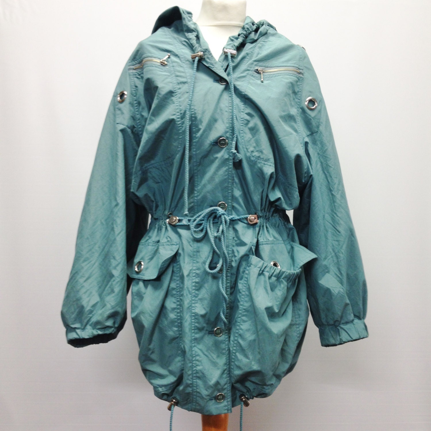 90's Teal Green Hooded Rain Mac Parka Coat Jacket