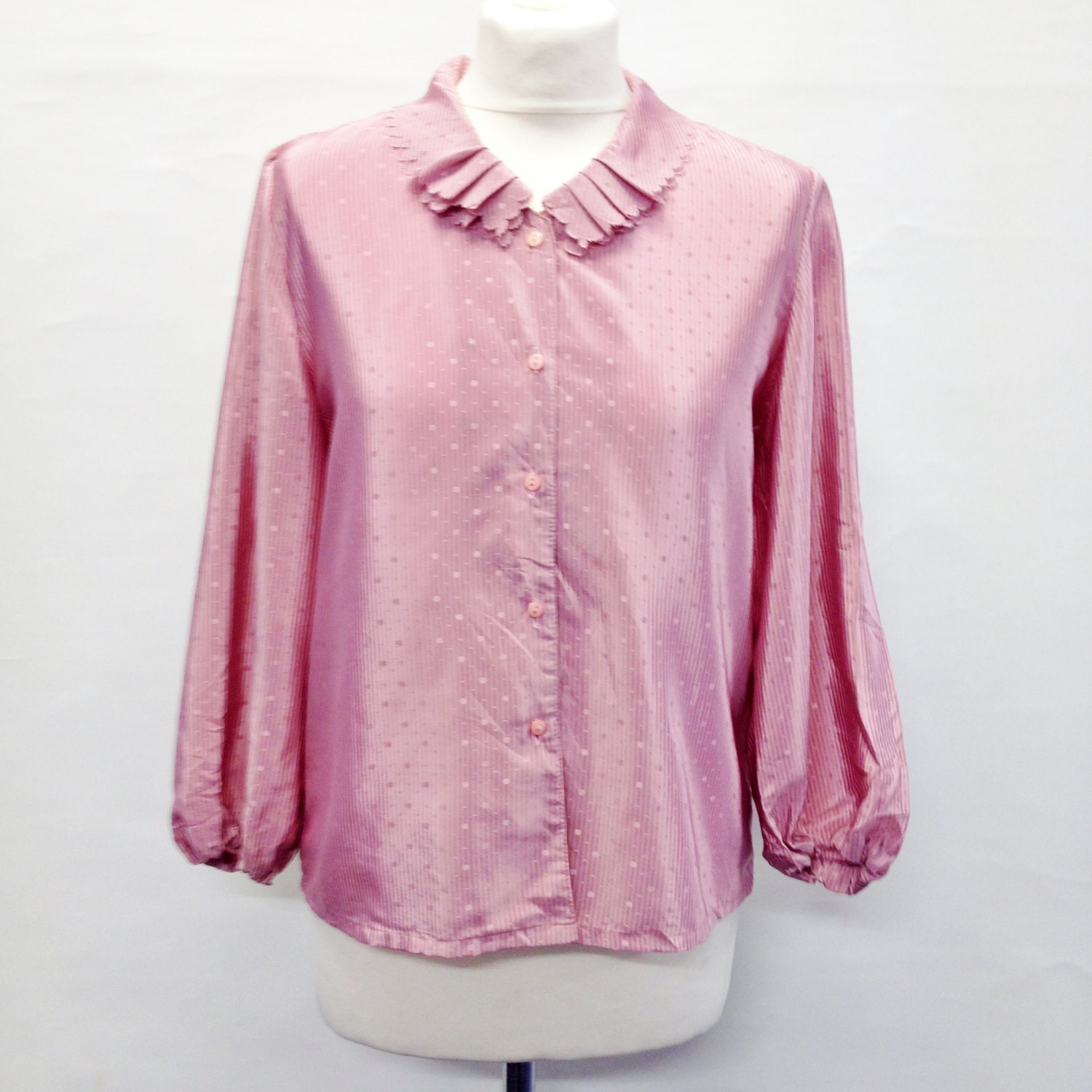 Vintage 60's Pink Dotty Frill Collar Blouse