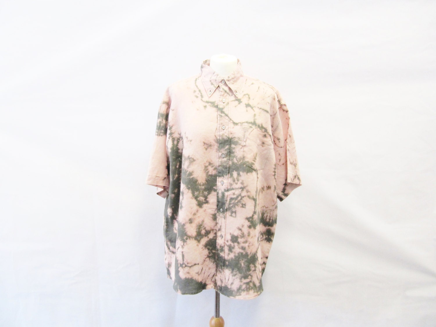 90s Grunge Salmon Pink Tie Dye Linen Shirt