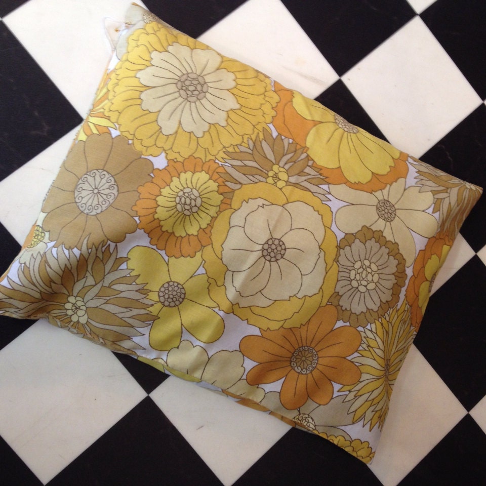 Vintage 1960s Floral Mustard Cushion