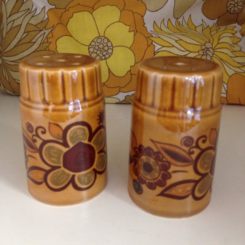 Vintage 1970s Floral Ceramic Salt and Pepper Pots