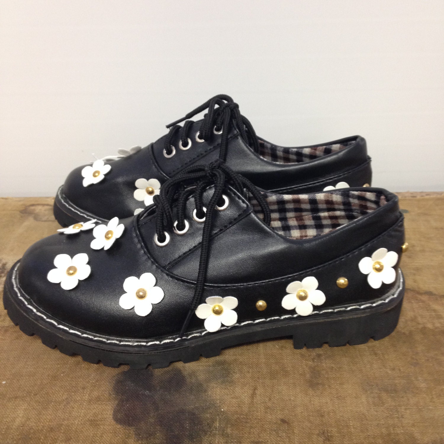 90s Grunge Doc Style Black Daisy Lace Up Shoe