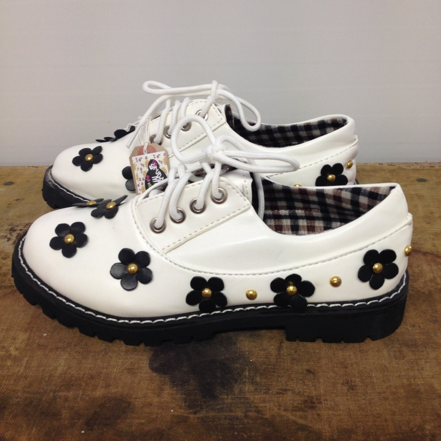 90s Grunge Doc Style White Daisy Lace Up Shoe