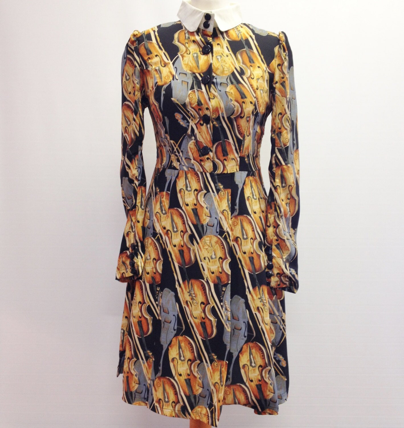 Retro Boutique Violin Music Peter Pan Collar Smock Dress