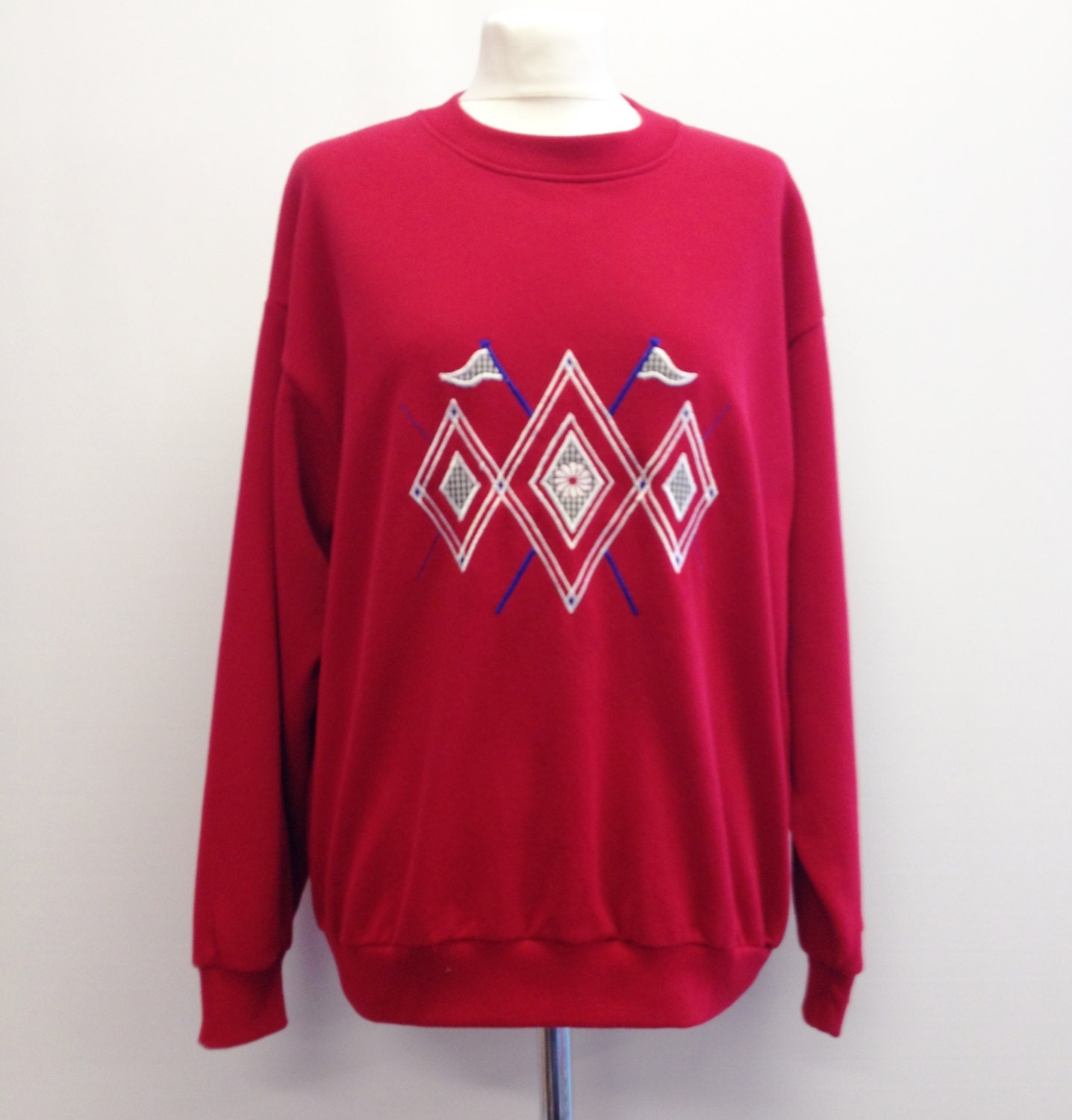 Handmade Red White Kitsch Reindeer Hearts Christmas Xmas Jumper Sweater