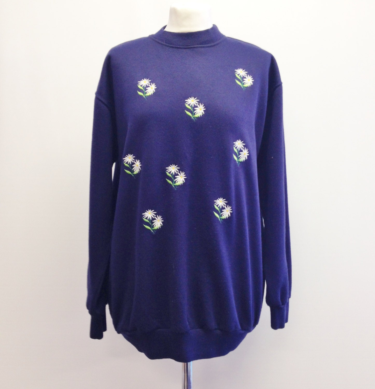 90's Navy Blue Daisy Print Sweater