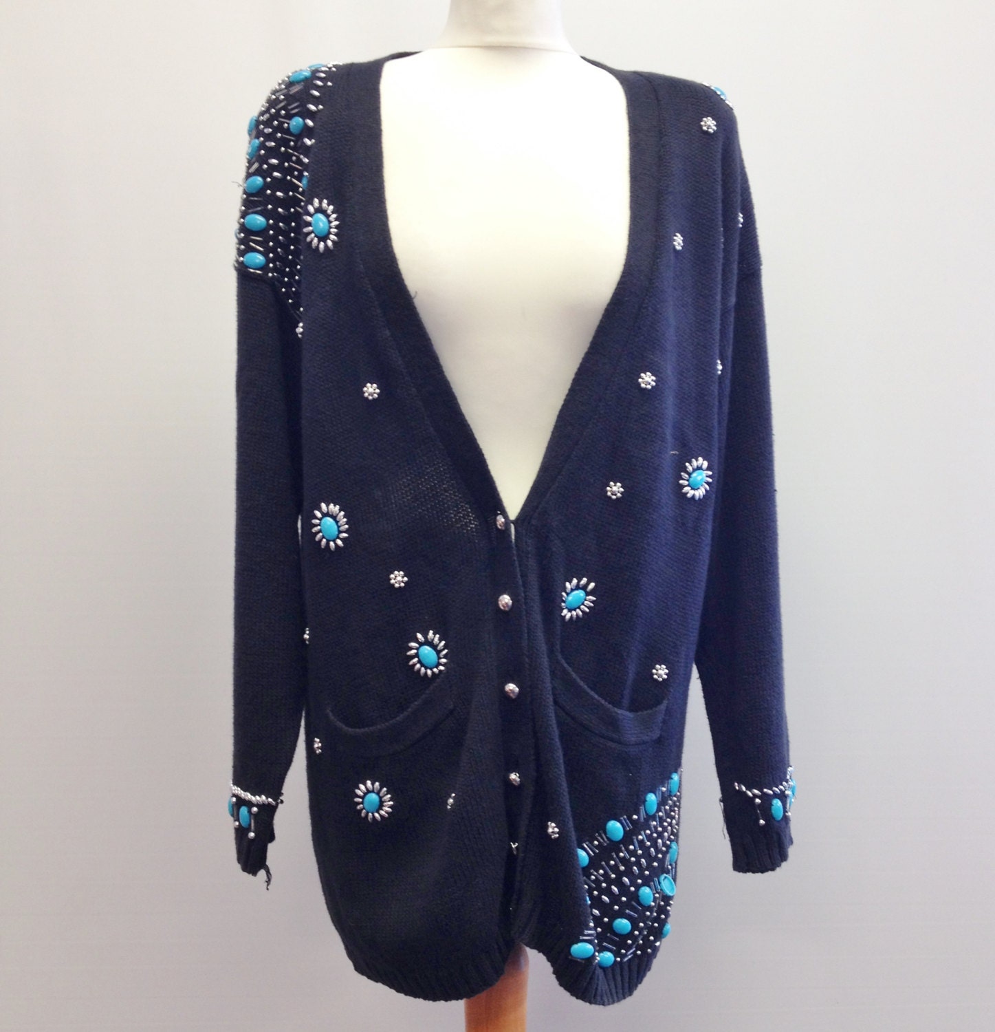 Vintage 1980's Turquoise Bead Embroidered Oversize Cardigan