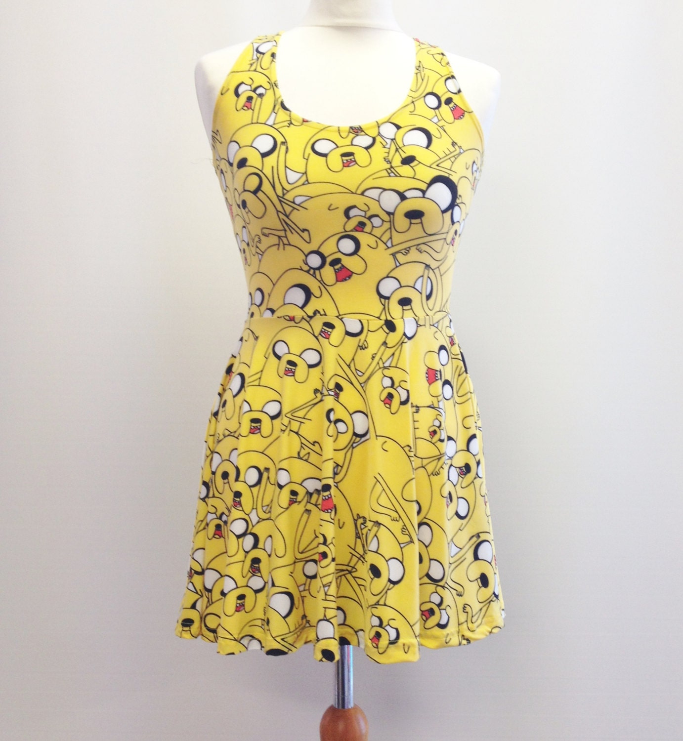 Kitsch Yellow Cartoon Spandex Skater Dress
